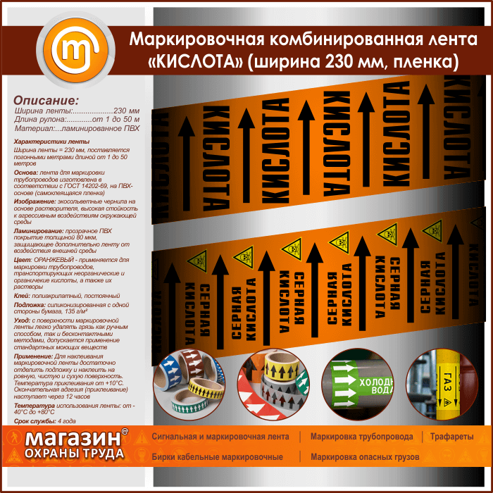 Маркировочная комбинированная лента «КИСЛОТА» (ширина 230 мм, самоклеящаяся плёнка) в Верее купить