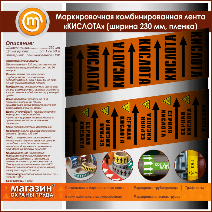 Маркировочная комбинированная лента «КИСЛОТА» (ширина 230 мм, самоклеящаяся плёнка с ламинированием) в Верее купить