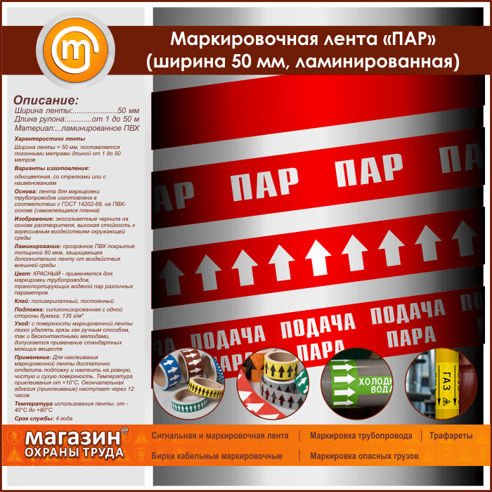 Маркировочная лента «ПАР» (ширина 50 мм, самоклеящаяся плёнка) в Верее купить