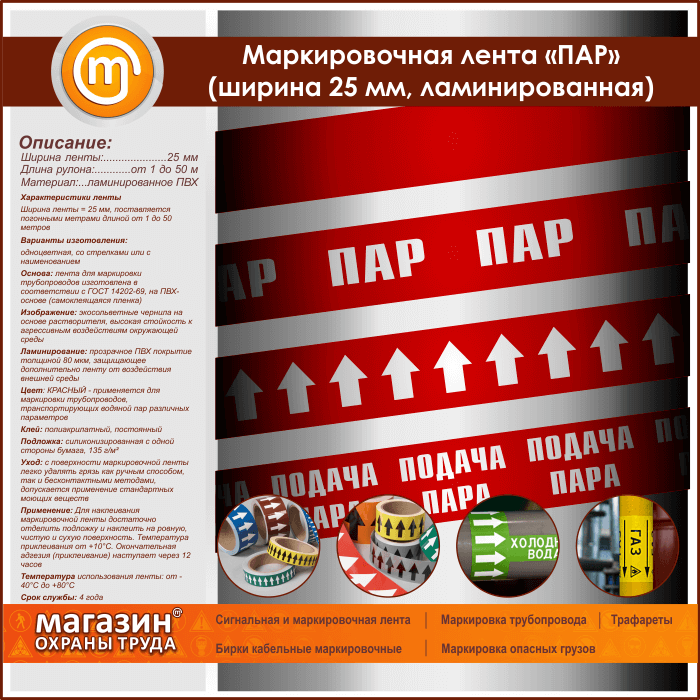 Маркировочная лента «ПАР» (ширина 25 мм, самоклеящаяся плёнка с ламинированием) в Верее купить