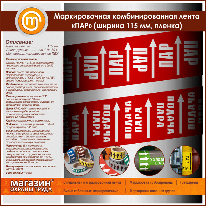 Маркировочная комбинированная лента «ПАР» (ширина 115 мм, самоклеящаяся плёнка с ламинированием) в Верее купить