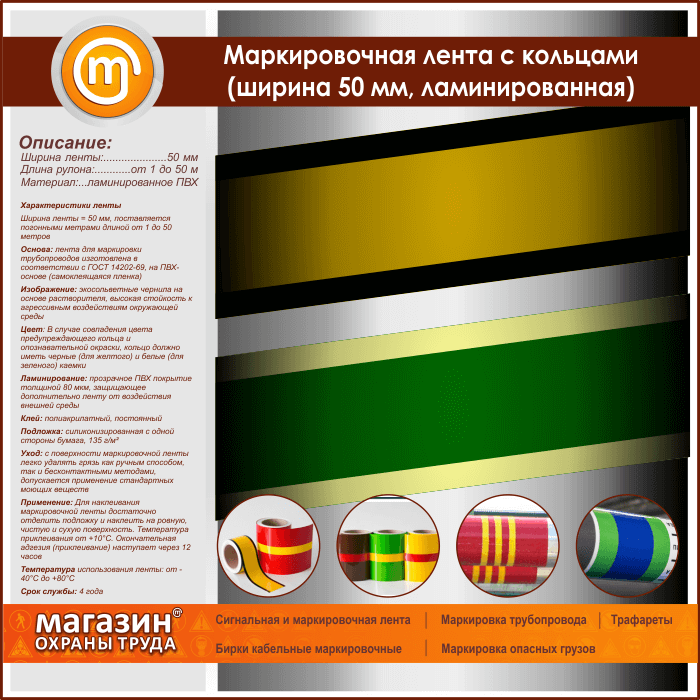 Маркировочная лента с кольцами (ширина 50 мм, самоклеящаяся плёнка с ламинированием) в Верее купить