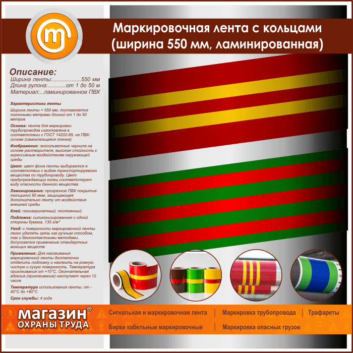 Маркировочная лента с кольцами (ширина 550 мм, самоклеящаяся плёнка с ламинированием) в Верее купить