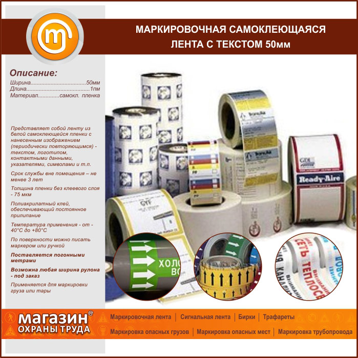 Маркировочная самоклеящаяся лента с текстом 50 мм в Верее купить