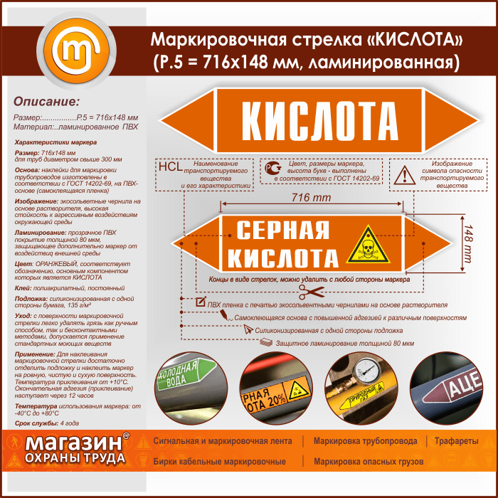 Маркировочная стрелка «КИСЛОТА» (P.5 = 716х148 мм, самоклеящаяся плёнка с ламинированием) в Верее купить