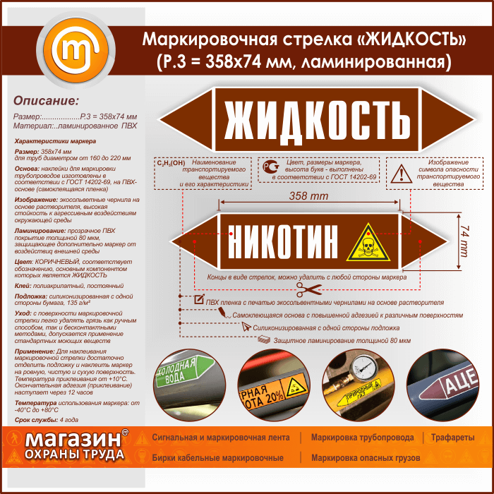 Маркировочная стрелка «ЖИДКОСТЬ» (P.3 = 358х74 мм, самоклеящаяся плёнка с ламинированием) в Верее купить