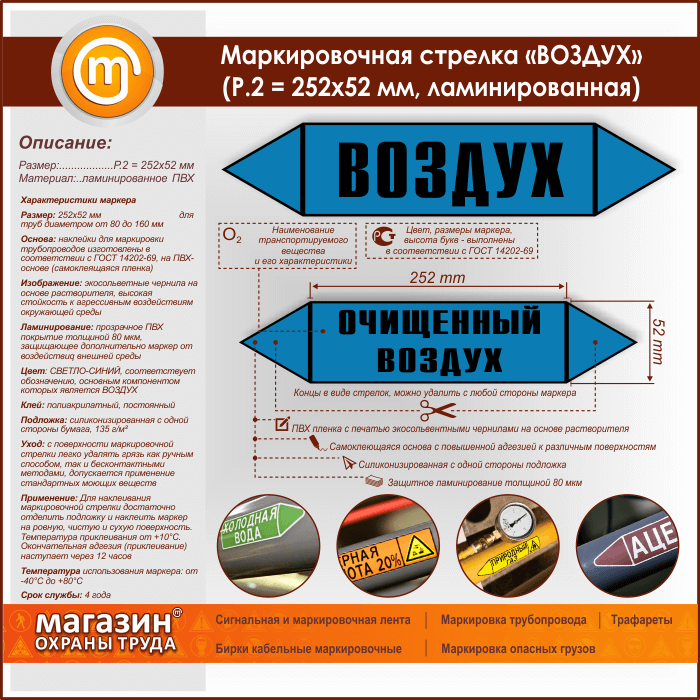 Маркировочная стрелка «ВОЗДУХ» (P.2 = 252х52 мм, самоклеящаяся плёнка с ламинированием) в Верее купить