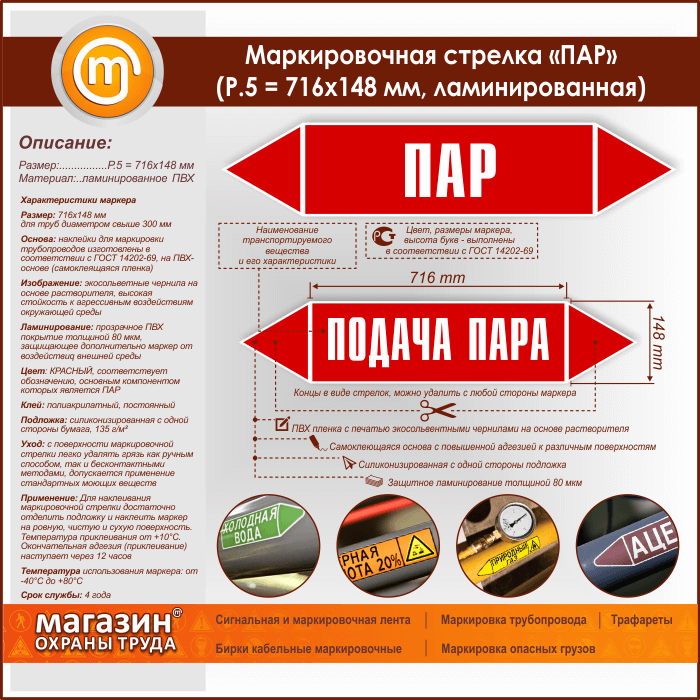 Маркировочная стрелка «ПАР» (P.5 = 716х148 мм, самоклеящаяся плёнка с ламинированием) в Верее купить