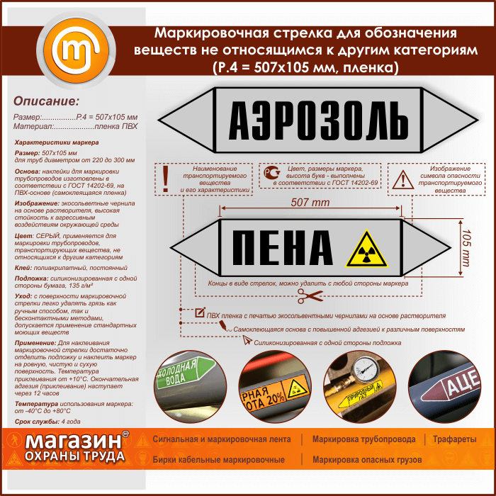 Маркировочная стрелка «ПРОЧИЕ ВЕЩЕСТВА» (P.4 = 507х105 мм, самоклеящаяся плёнка) в Верее купить
