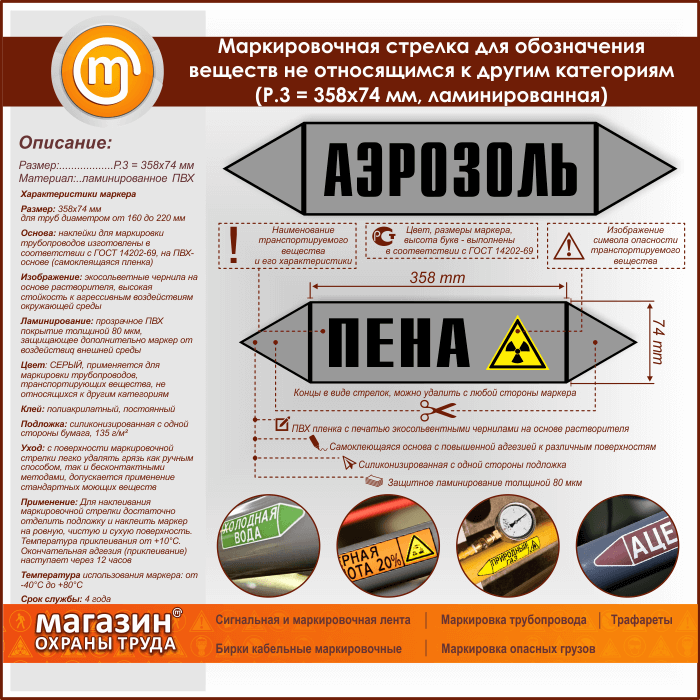 Маркировочная стрелка «ПРОЧИЕ ВЕЩЕСТВА» (P.3 = 358х74 мм, самоклеящаяся плёнка с ламинированием) в Верее купить