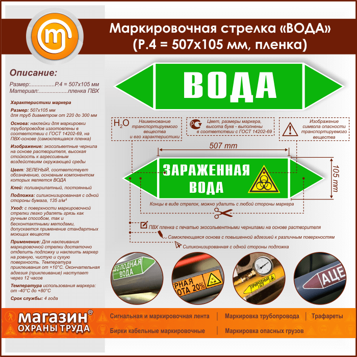 Маркировочная стрелка «ВОДА» (P.4 = 507х105 мм, самоклеящаяся плёнка) в Верее купить