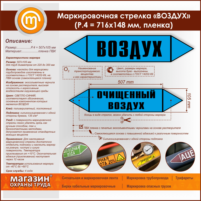 Маркировочная стрелка «ВОЗДУХ» (P.4 = 507х105 мм, самоклеящаяся плёнка) в Верее купить