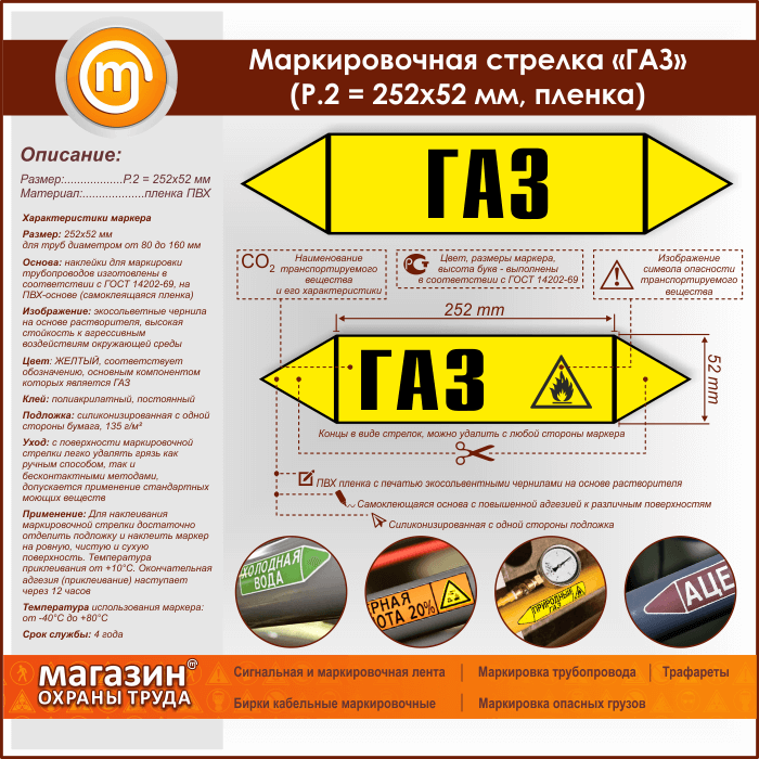 Маркировочная стрелка «ГАЗ» (P.2 = 252х52 мм, самоклеящаяся плёнка) в Верее купить
