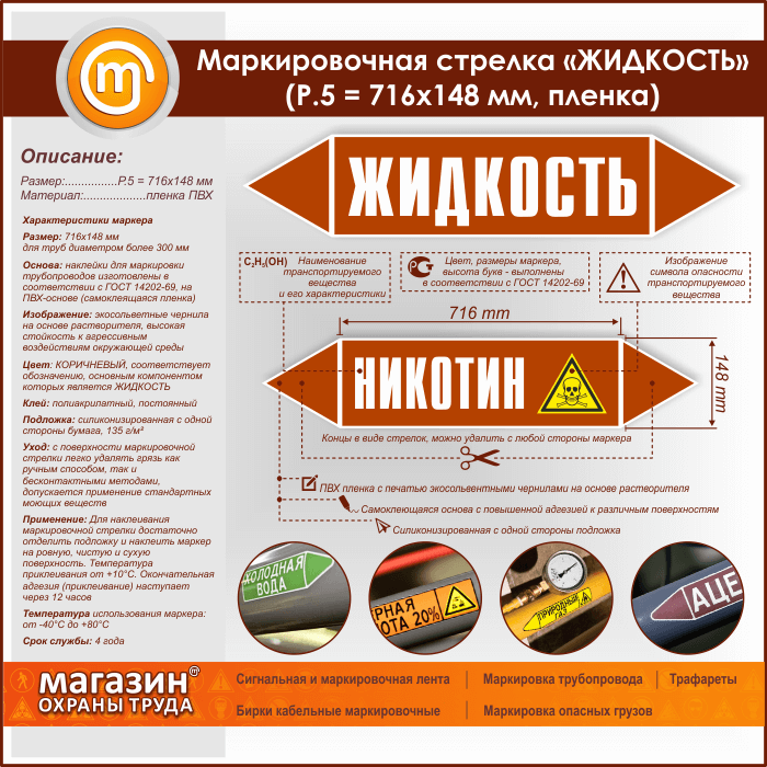 Маркировочная стрелка «ЖИДКОСТЬ» (P.5 = 716х148 мм, самоклеящаяся плёнка) в Верее купить