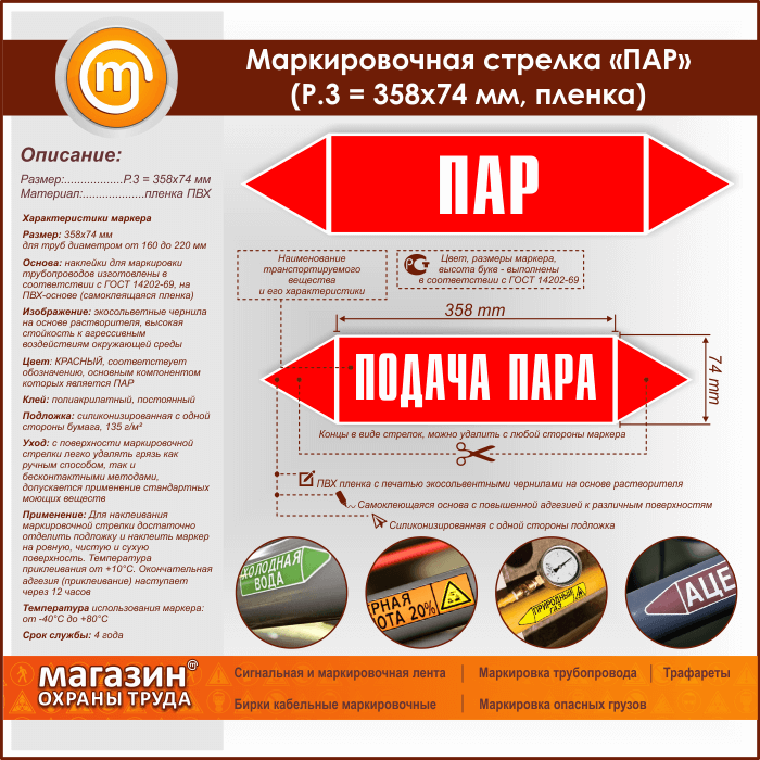 Маркировочная стрелка «ПАР» (P.3 = 358х74 мм, самоклеящаяся плёнка) в Верее купить