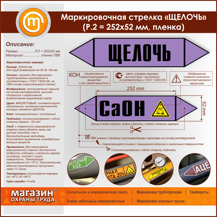 Маркировочная стрелка «ЩЕЛОЧЬ» (P.2 = 252х52 мм, самоклеящаяся плёнка) в Верее купить