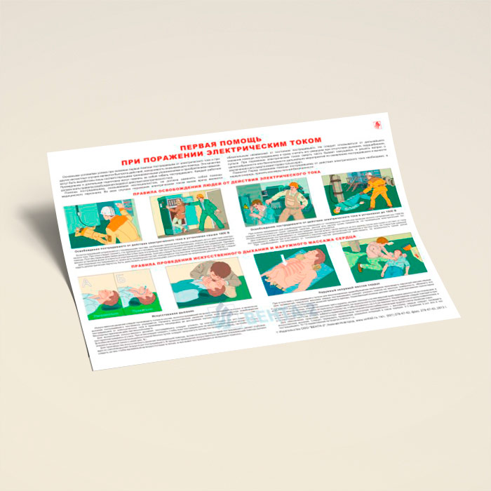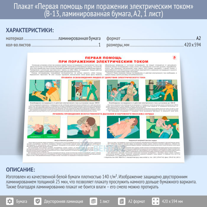 Плакат «Первая помощь при поражении электрическим током» (В-13, ламинированная бумага, А2, 1 лист) в Верее купить