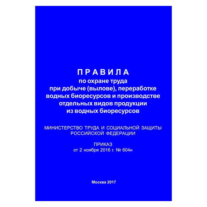 Правила по охране труда при добыче (вылове), переработке водных биоресурсов и производстве отдельных видов продукции из водных биоресурсов (Приказ Минтруда РФ от 02.11.2016 № 604н) (ЛАП-22) в Верее купить