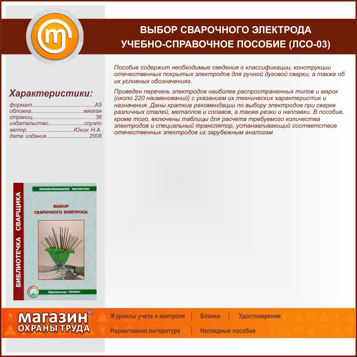 Выбор сварочного электрода – учебно-справочное пособие (ЛСО-03) в Верее купить