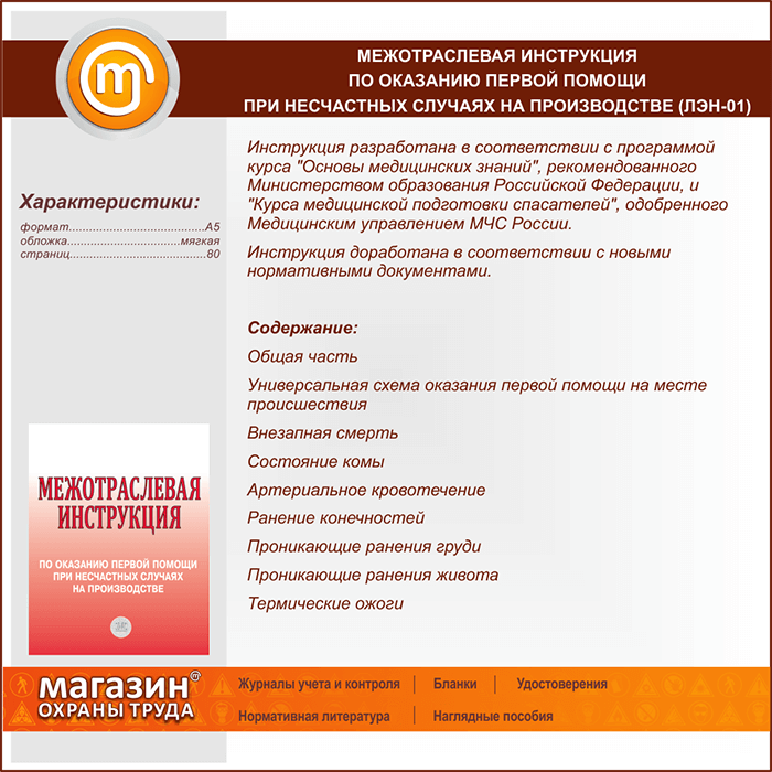 Межотраслевая инструкция по оказанию первой помощи при несчастных случаях на производстве (ЛЭН-01) в Верее купить