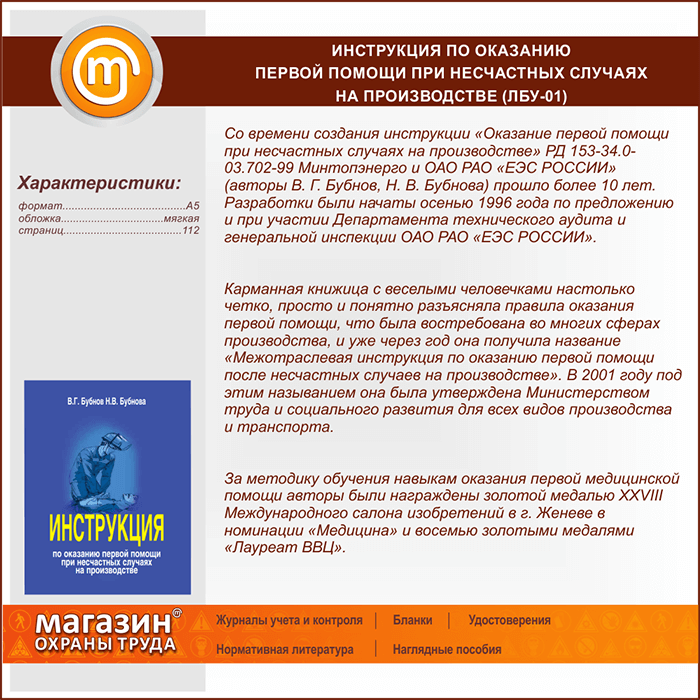 Инструкция по оказанию первой помощи при несчастных случаях на производстве (ЛБУ-01) в Верее купить