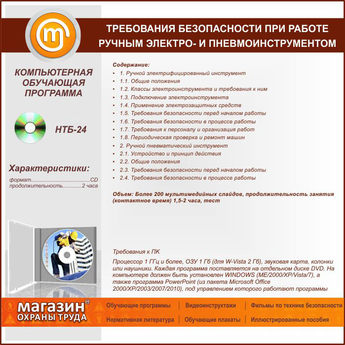 «Требования безопасности при работе ручным электро- и пневмоинструментом», обучающая программа в Верее купить
