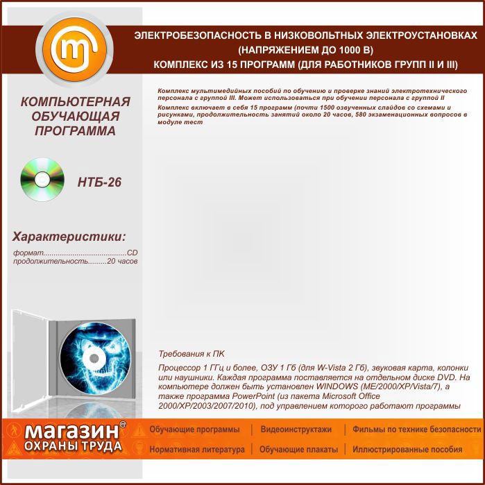 «Электробезопасность в низковольтных электроустановках (напряжением до 1000 В)», комплекс из 15 обучающих программ (для работников групп II и III) в Верее купить