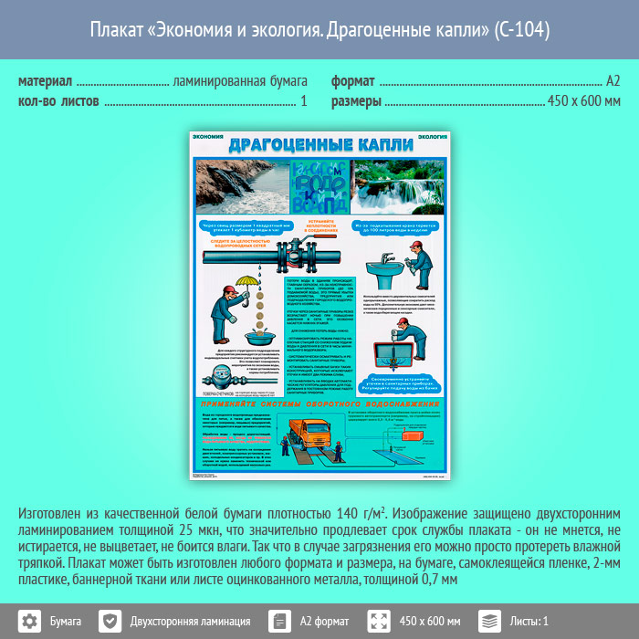 Плакат «Экономия и экология. Драгоценные капли» (С-104, ламинированная бумага, А2, 1 лист) в Верее купить