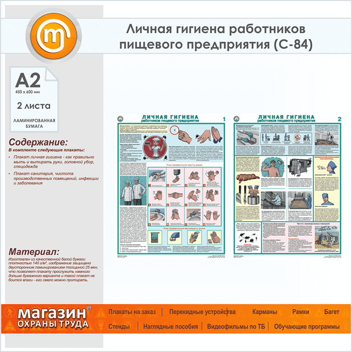 Плакаты «Личная гигиена работников пищевого предприятия» (С-84, ламинированная бумага, А2, 2 листа) в Верее купить