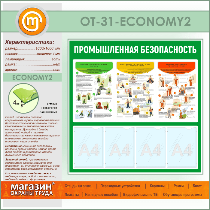 Стенд «Промышленная безопасность» с 4 карманами (OT-31-ECONOMY2) в Верее купить