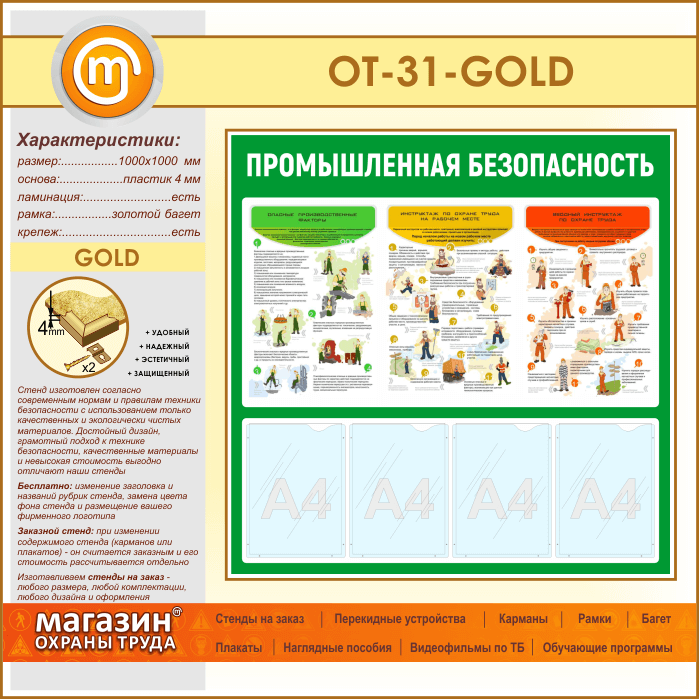 Стенд «Промышленная безопасность» с 4 карманами (OT-31-GOLD) в Верее купить