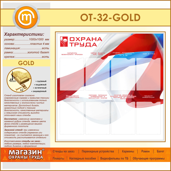 Стенд «Охрана труда» с 8 карманами (OT-32-GOLD) в Верее купить