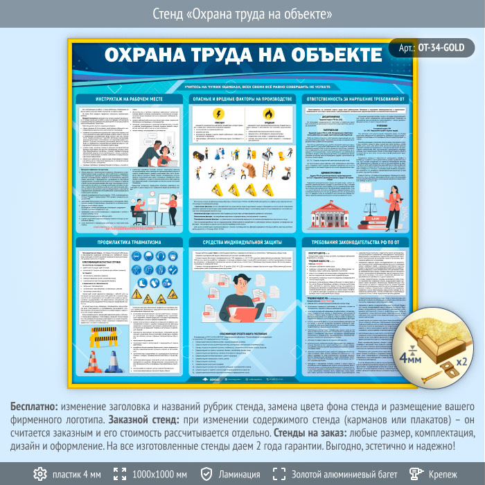 Стенд «Охрана труда на объекте» (OT-34-GOLD) в Верее купить