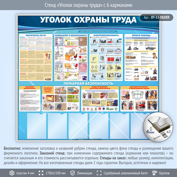 Стенд «Уголок охраны труда» с 6 карманами (OT-33-SILVER) в Верее купить