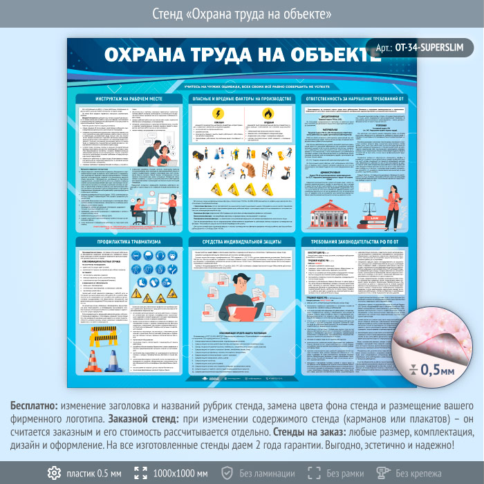 Стенд «Охрана труда на объекте» (OT-34-SUPERSLIM) в Верее купить