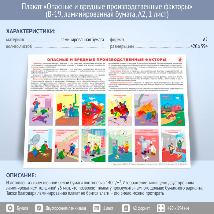 Плакат «Опасные и вредные производственные факторы» (В-19, ламинированная бумага, А2, 1 лист) в Верее купить