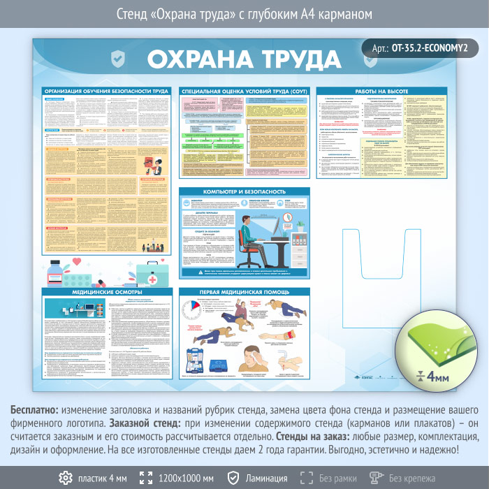 Стенд «Охрана труда» с глубоким А4 карманом (OT-35.2-ECONOMY2) в Верее купить