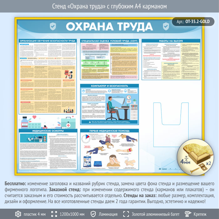 Стенд «Охрана труда» с глубоким А4 карманом (OT-35.2-GOLD) в Верее купить
