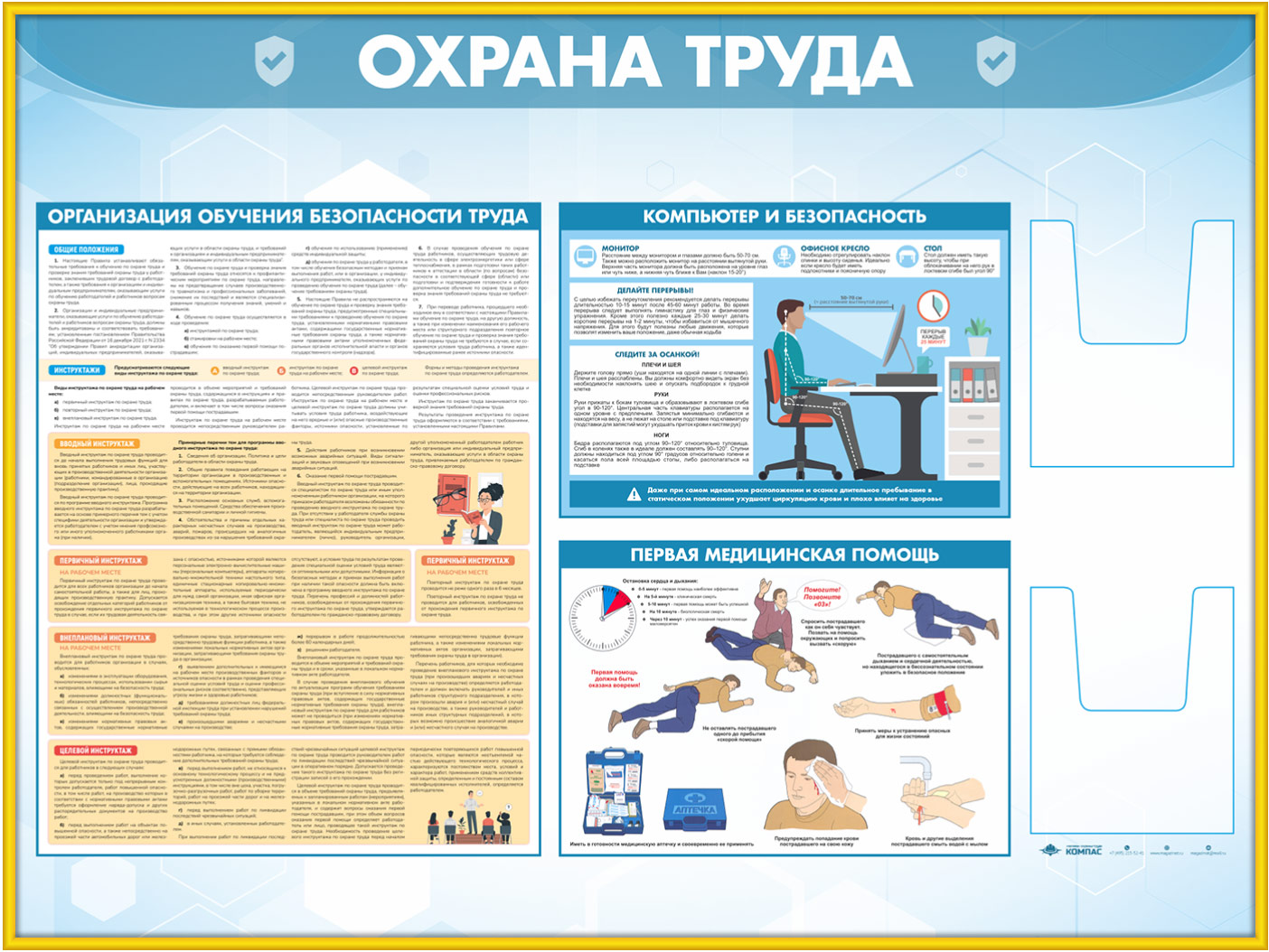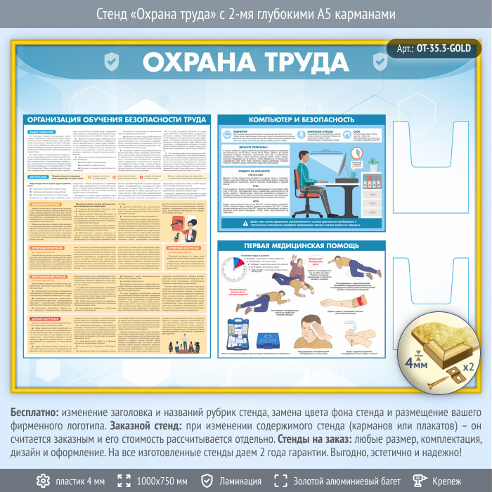 Стенд «Охрана труда» с 2-мя глубокими А5 карманами (OT-35.3-GOLD) в Верее купить
