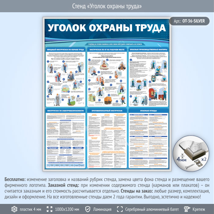 Стенд «Уголок охраны труда» (OT-36-SILVER) в Верее купить