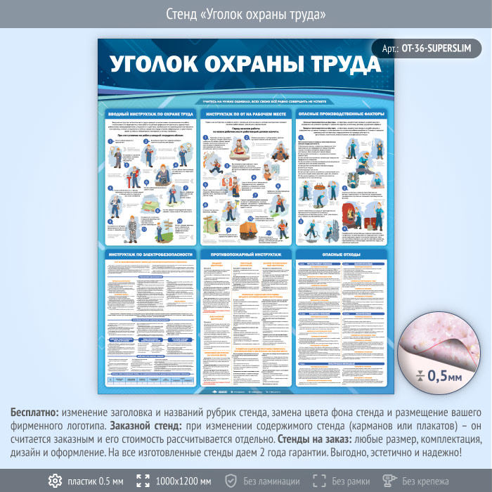 Стенд «Уголок охраны труда» (OT-36-SUPERSLIM) в Верее купить