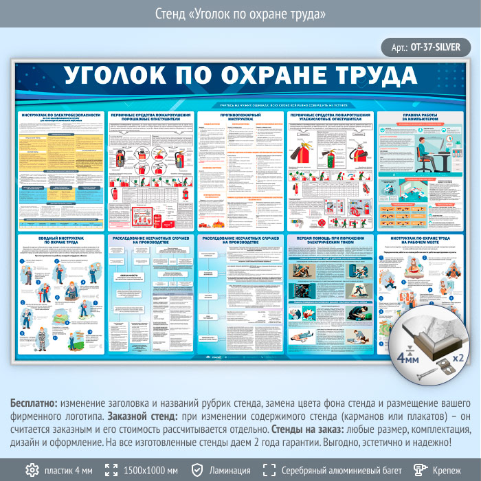Стенд «Уголок по охране труда» (OT-37-SILVER) в Верее купить
