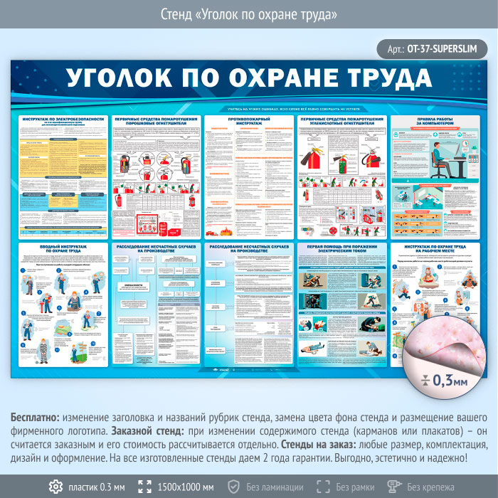 Стенд «Уголок по охране труда» (OT-37-SUPERSLIM) в Верее купить