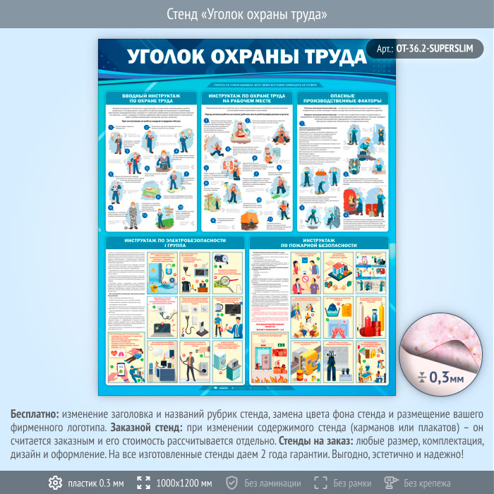 Стенд «Уголок охраны труда» (OT-36.2-SUPERSLIM) в Верее купить