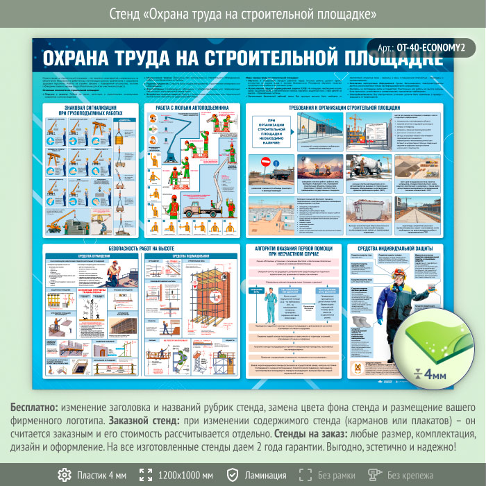 Стенд «Охрана труда на строительной площадке» (OT-40-ECONOMY2) в Верее купить