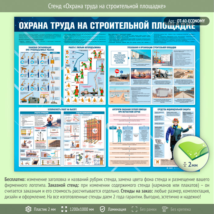 Стенд «Охрана труда на строительной площадке» (OT-40-ECONOMY) в Верее купить