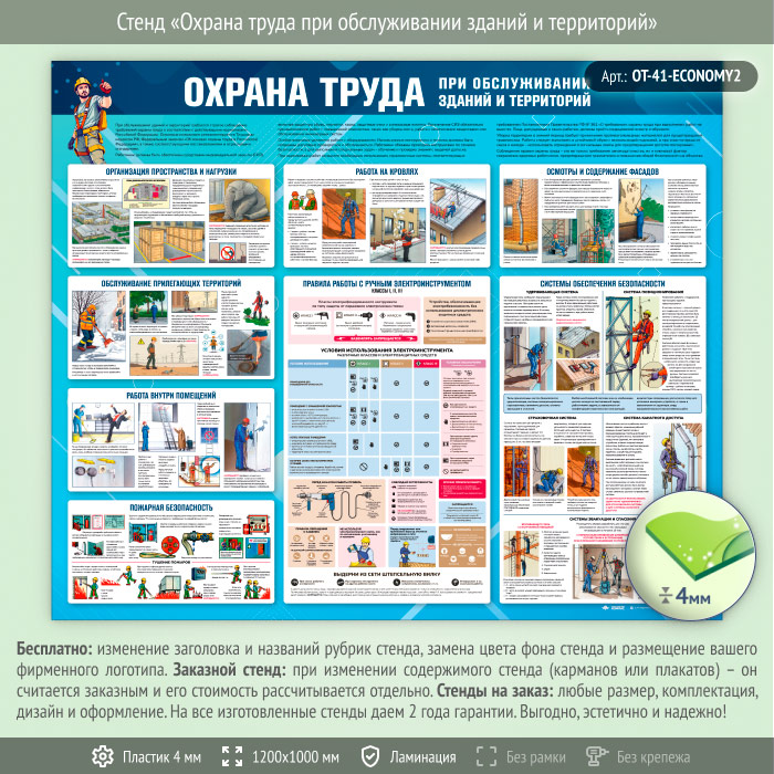 Стенд «Охрана труда при обслуживании зданий и территорий» (OT-41-ECONOMY2) в Верее купить