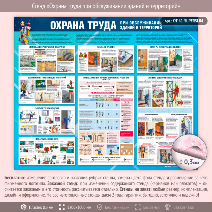 Стенд «Охрана труда при обслуживании зданий и территорий» (OT-41-SUPERSLIM) в Верее купить