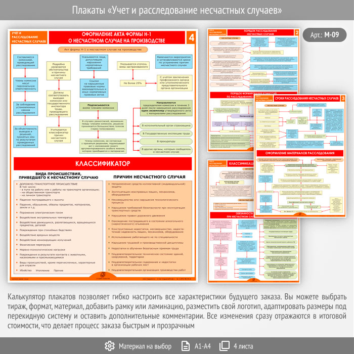 Плакаты «Учет и расследование несчастных случаев» (М-09, 4 листа) в Верее купить