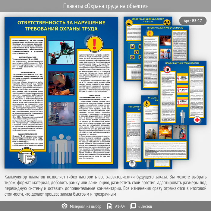 Плакаты «Охрана труда на объекте» (ВЗ-17, 6 листов) в Верее купить
